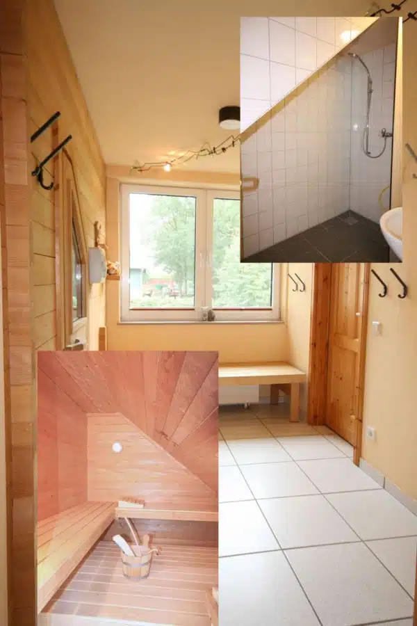 Das Wohnzimmer mit dem offenen Kamin strahlt ein gemütliches Ambiente aus und hat eine angenehme Größe von ca. 43 m². Der Hauswirtschaftsraum im Erdgeschoß bietet Ihnen mit ca. 8 m² ausreichend Platz für Waschmaschine und Trockner. Sie können sowohl von dem Hauswirtschaftsraum, sowie von der Küche und von dem Wohnzimmer aus, auf die teilweise überdachte Terrasse gelangen um gemütliche Stunden zu verbringen. Von der großzügige Terrasse mit einem eingebauten elektrisch bedienbares Dachfenster, können Sie den großen Garten betreten. Die Terrasse geht seitlich von dem Haus über in ein Balkon, der Ihnen Zugang zu dem kleinen Wellnessbereich mit Sauna und Ruheraum bietet.